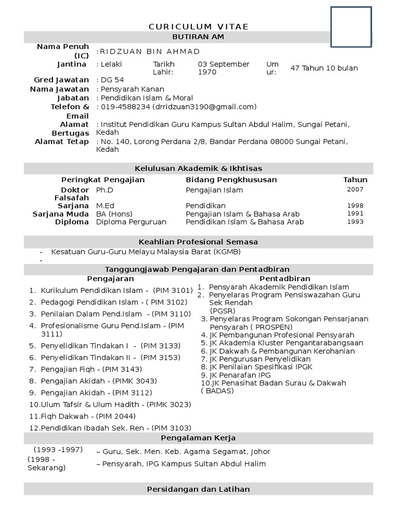 Contoh Cv Untuk Jawatan Pensyarah